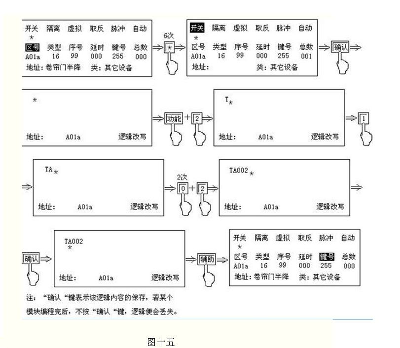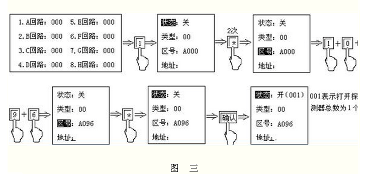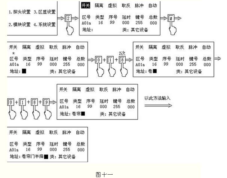 )探测器与输出模块调试正常后,可依据需要输入中文地址,具体操