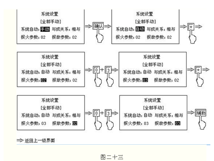 常后,可以设置成自动,通过对应报警点启动输出设备,若手动与自动均正常,