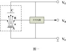 图一是离子感烟探测器电离室的电原理图,图中α为放射源镅(Am